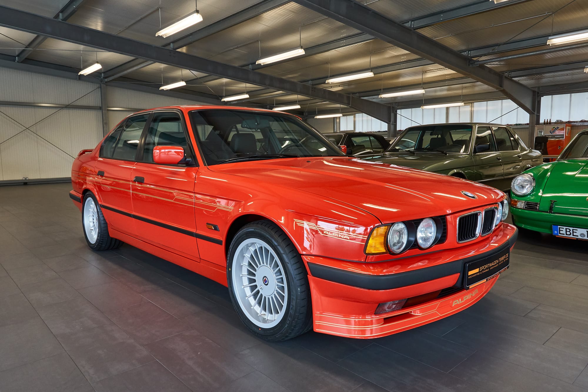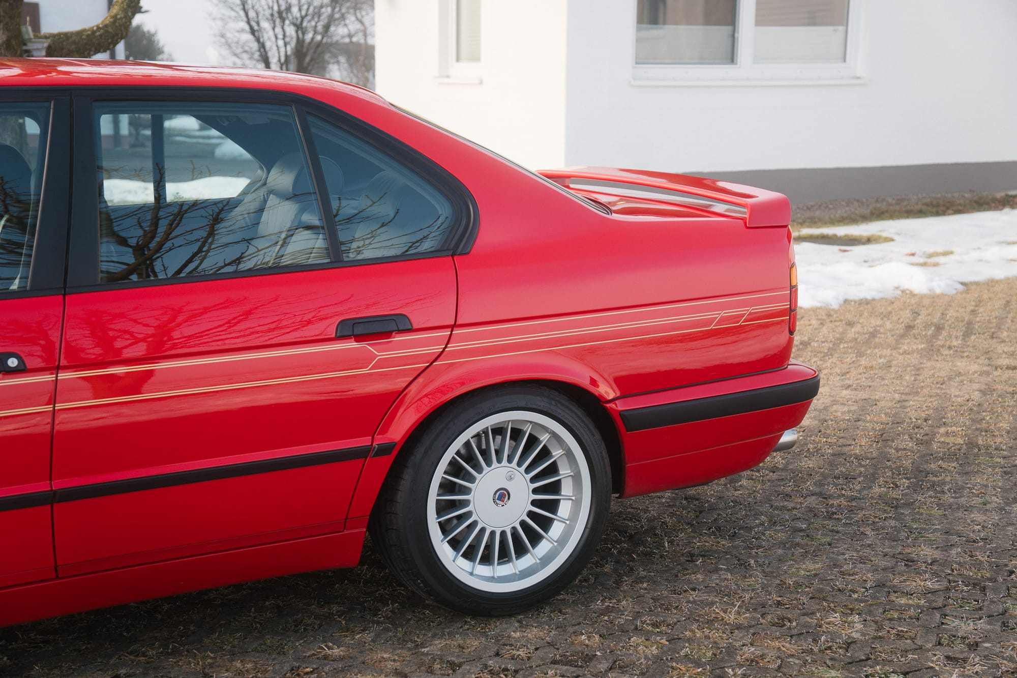 Wer einmal das Vergnügen hatte, dieses Modell zu bewegen, weiss, wovon wir schreiben. Ein seidiger, kultivierter Motorlauf, eine feine Gasannahme und der Sauger-typische Punch mit wachsender Drehzahl. Das alles begleitet von einem Achtzylinder-Sound, wie er heute nur noch selten zu finden ist. Man kann gut nachvollziehen, warum eine ALPINA-Limousine in den 90ern als das perfekte Langstrecken-Automobil für den Unternehmer galt.