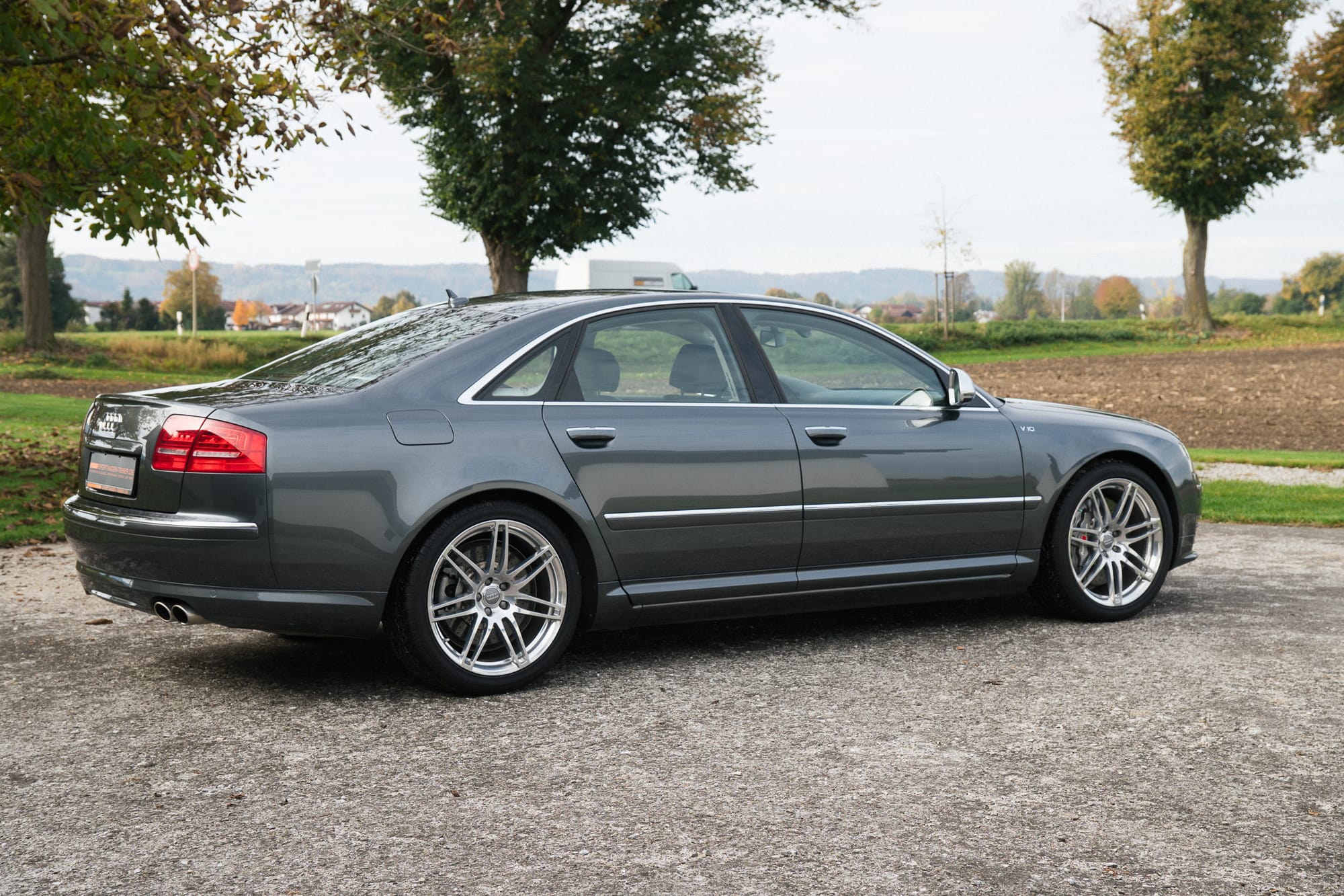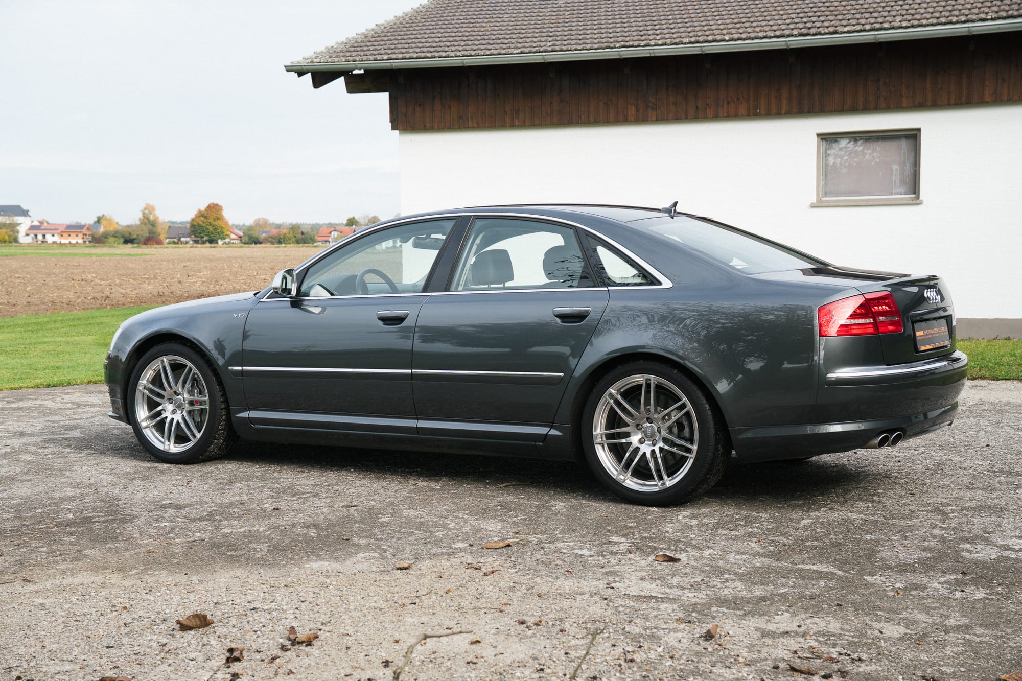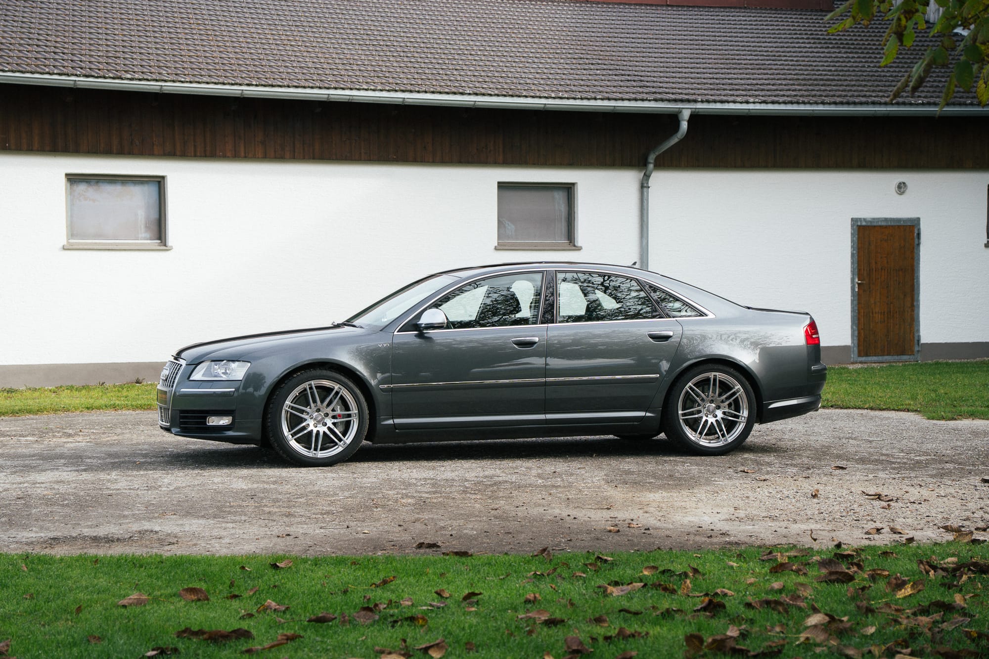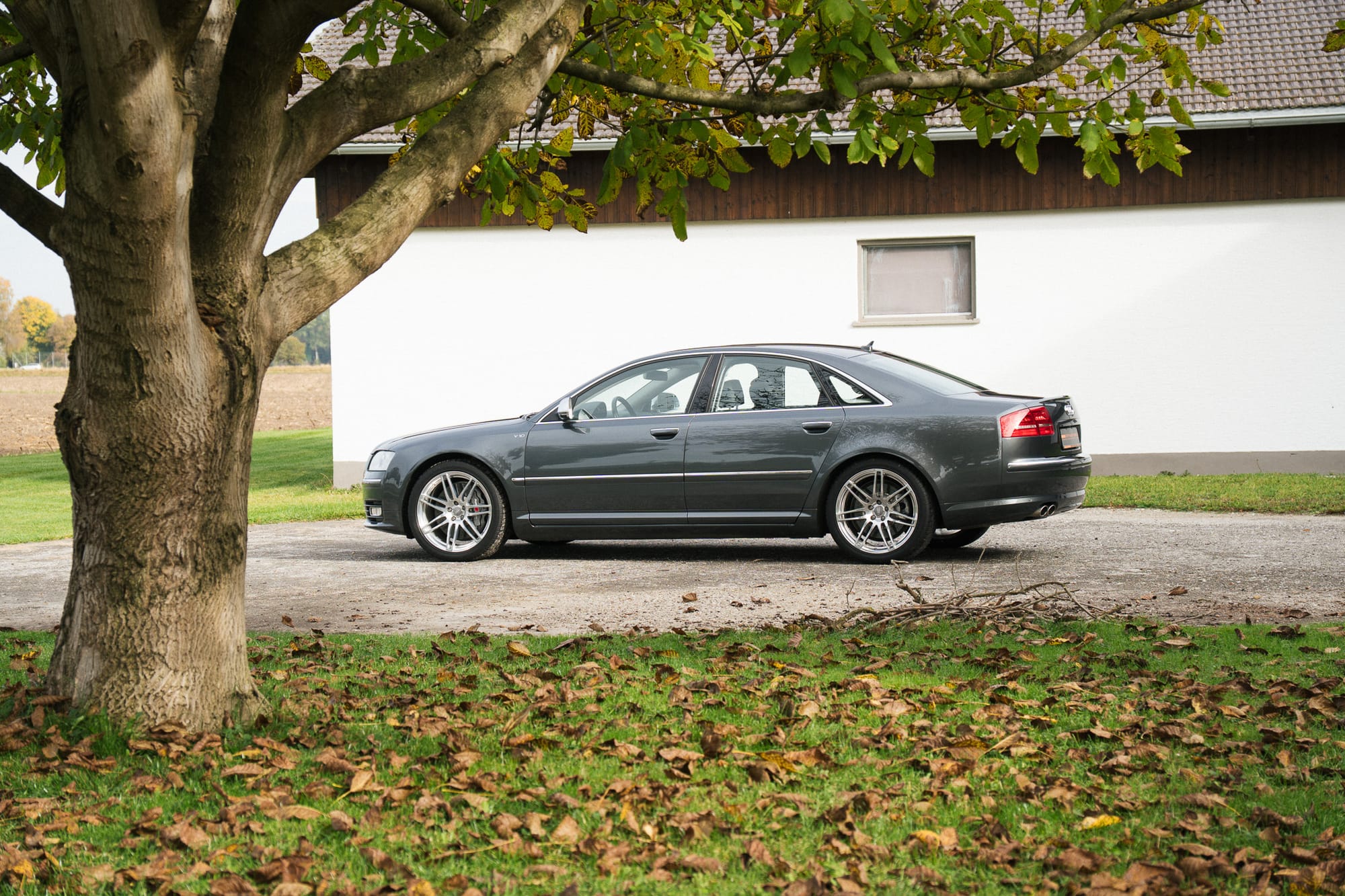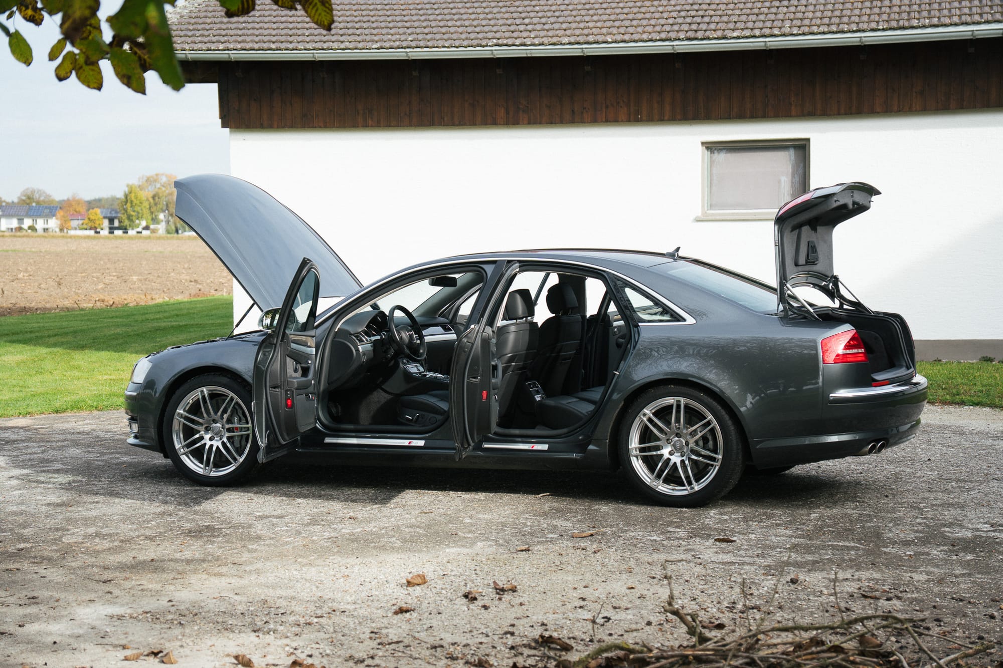 Weil der uns persönliche bekannte Besteller seines Zeichens Vorstand einer großen Autohaus-Gruppe im Nordwesten Deutschlands war und sich nebst allem betriebswirtschaftlichen Denken auch die Begeisterung für das Automobile bewahrt hat, finden sich in diesem AUDI S8 alle bestellbaren Highlights. Vom auch heute noch grandiosen Bang & Olufsen Sound über die Keramikbremse hinter passenden Schmiederädern, die komfortable adaptive cruise control den bis hin zur erweiterten Lederausstattung in Naturleder.