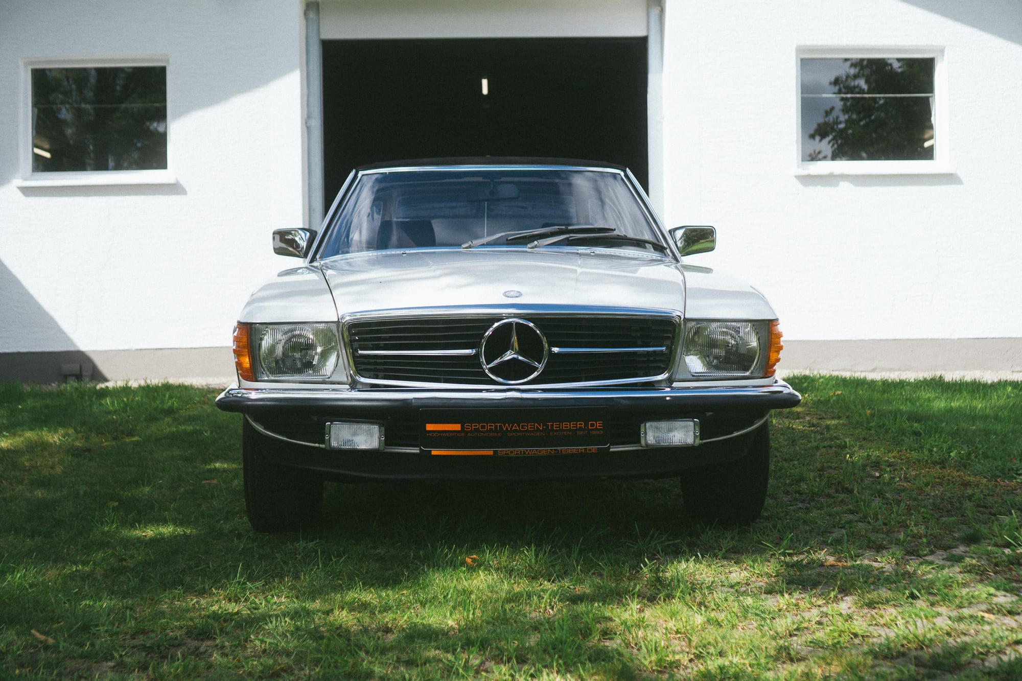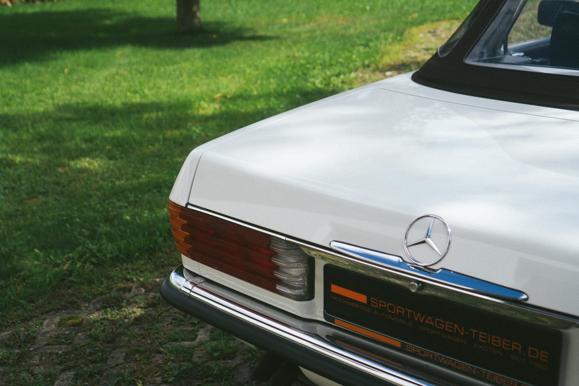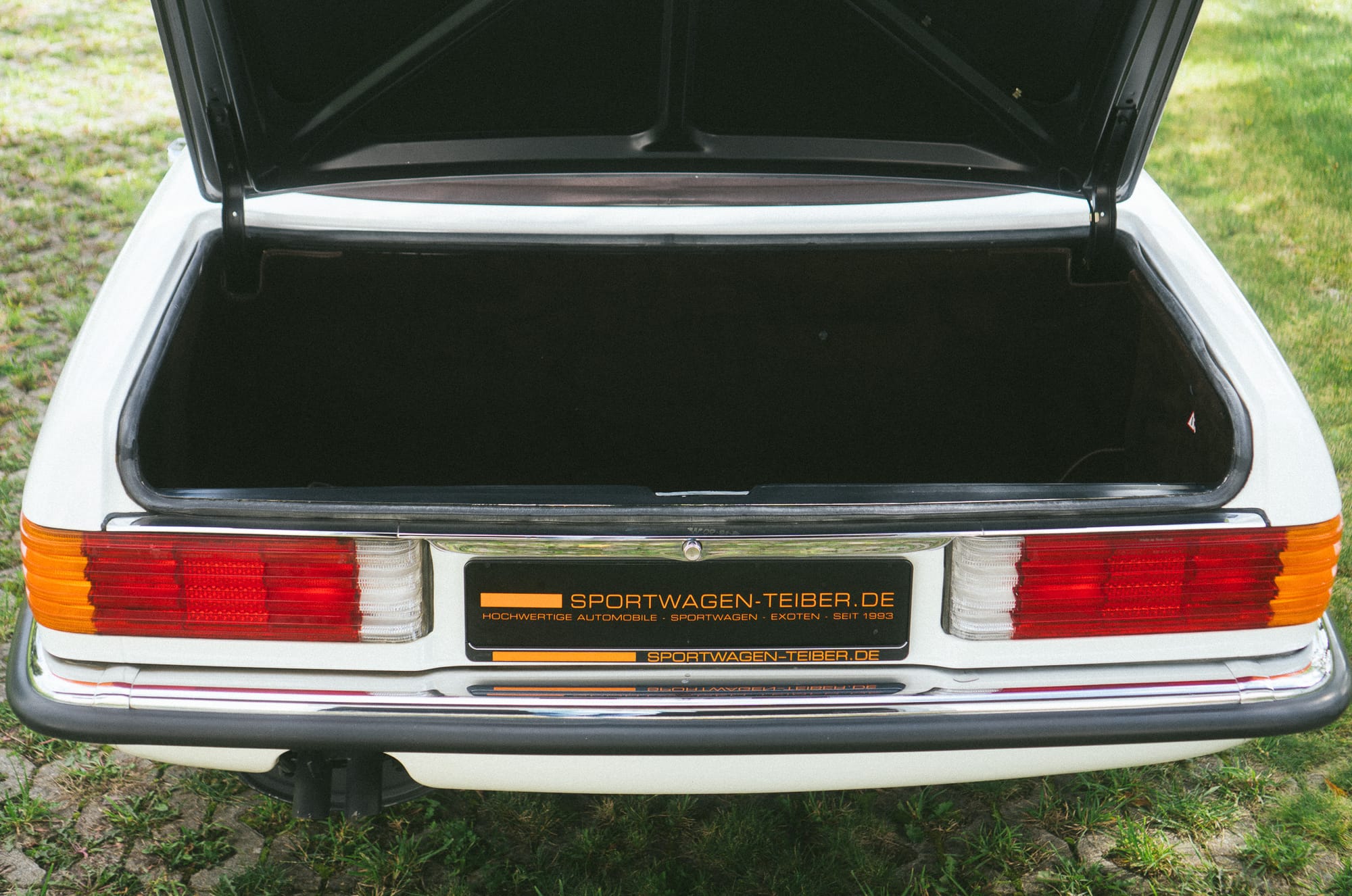 Konzentrieren wir uns also auf die Erfolgsgeschichte in diesem Trio, den Mercedes-Benz 280 SL der Baureihe R107. Den gibt es ab sofort bei Sportwagen Teiber in außergewöhnlich perfektem Zustand und bei guter Pflege werden auch die nächsten 44 Jahre ihren Teil zur würdevollen Patina beitragen.