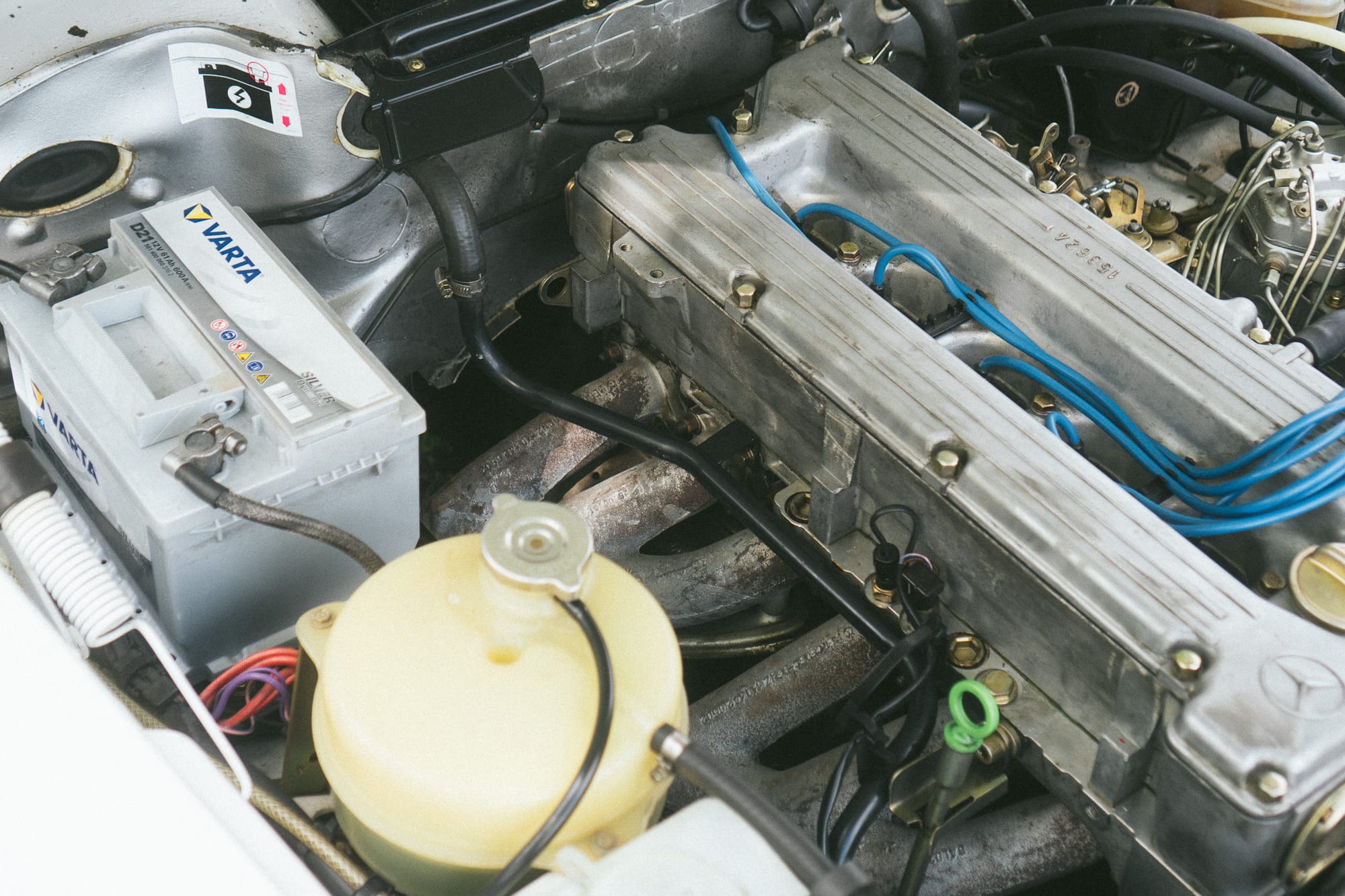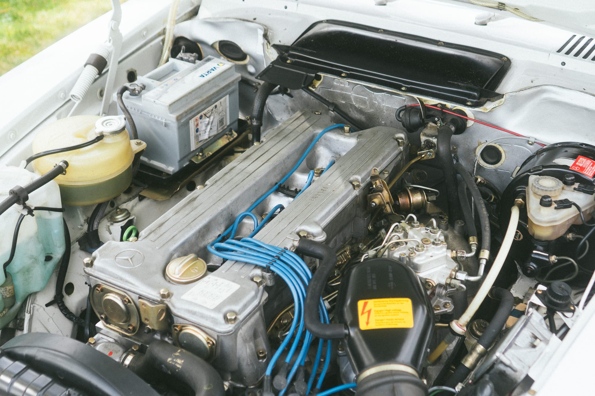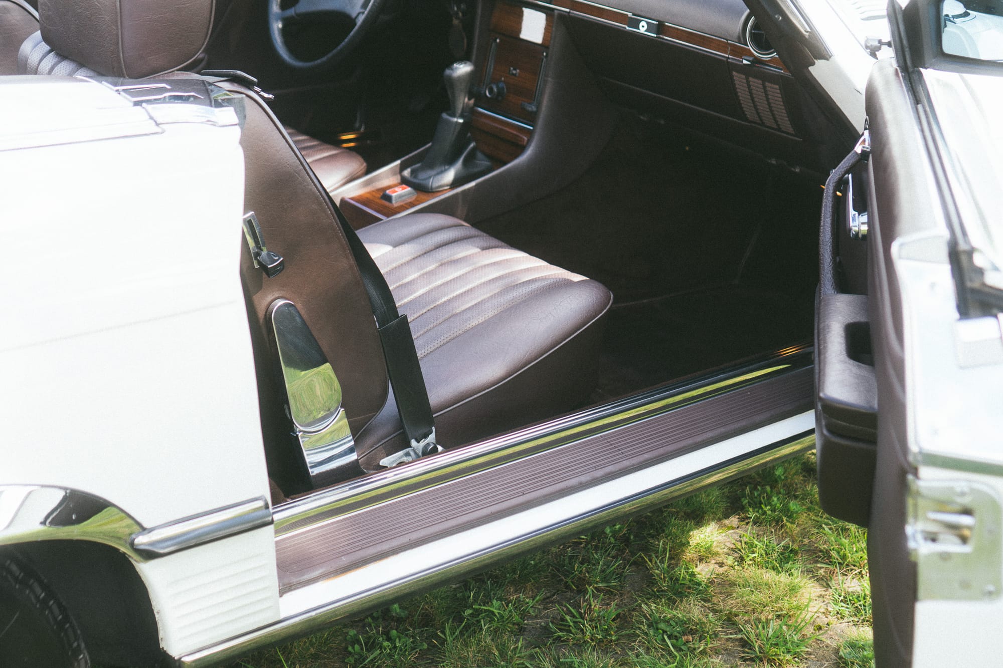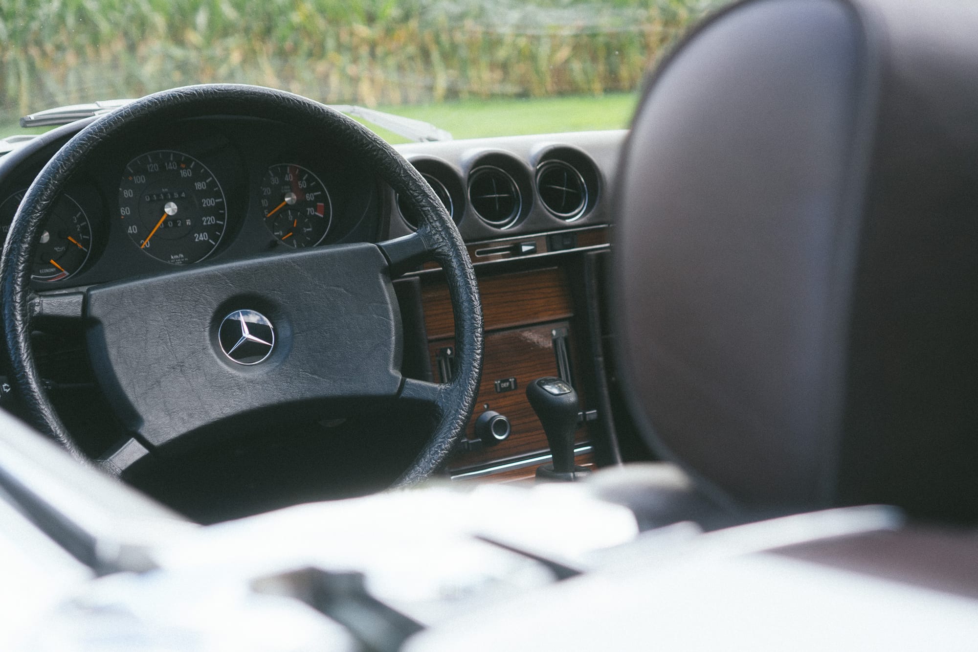 Die hier angebotene Kombination aus dem 2,8-Liter Reihensechszylinder mit Schaltgetriebe gilt innerhalb der R107-Baureihe als der Sportler. Der Motor dreht fein und willig hoch, klingt kernig und hat mit dem 1.520kg-schweren Roadster leichtes Spiel.