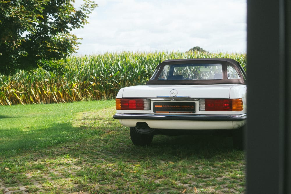 Entspanntes Urlaubsgefühl zum in-die-Garage-stellen. Der R107 gilt im Allgemeinen als zuverlässiger Klassiker und perfekter Begleiter für die entspannte Ausfahrt.