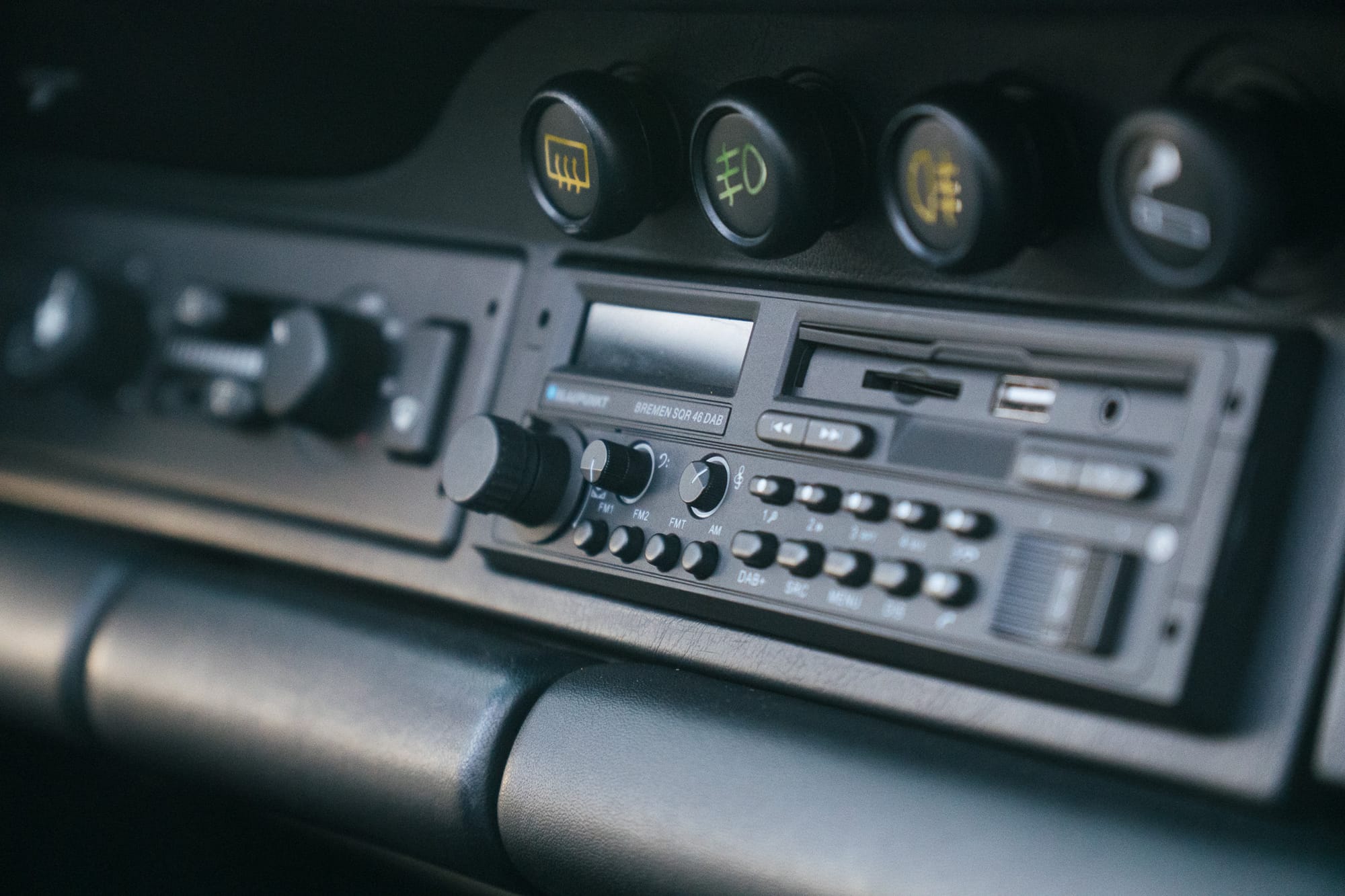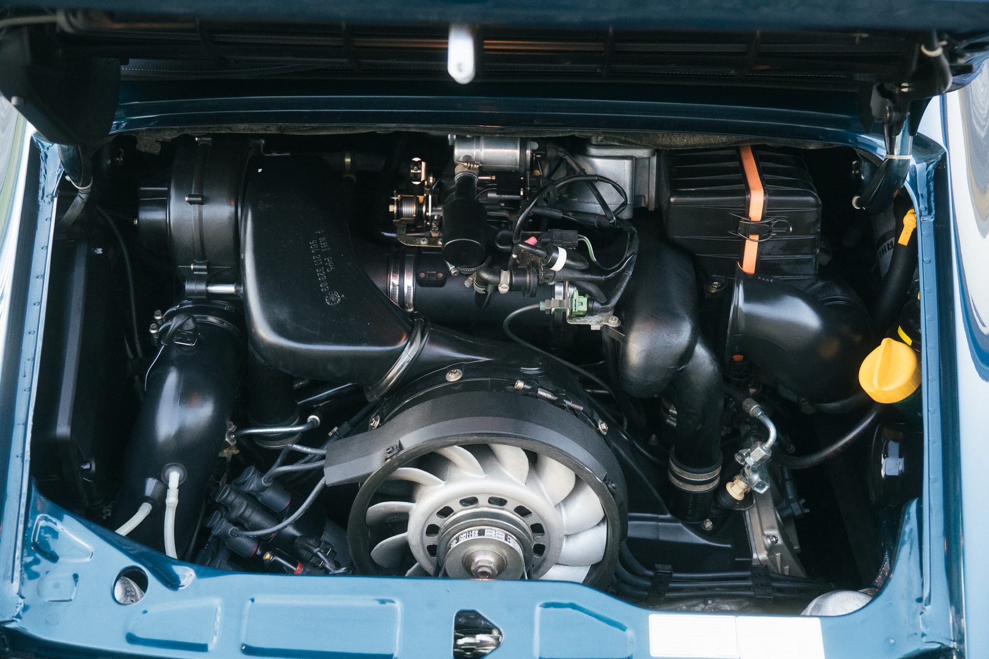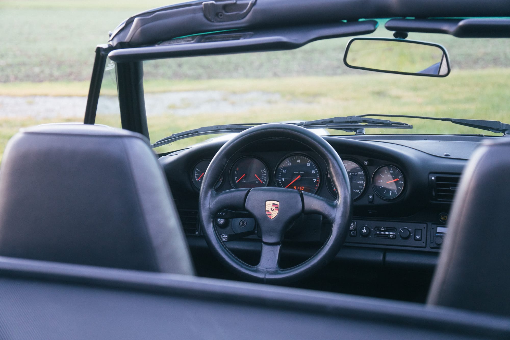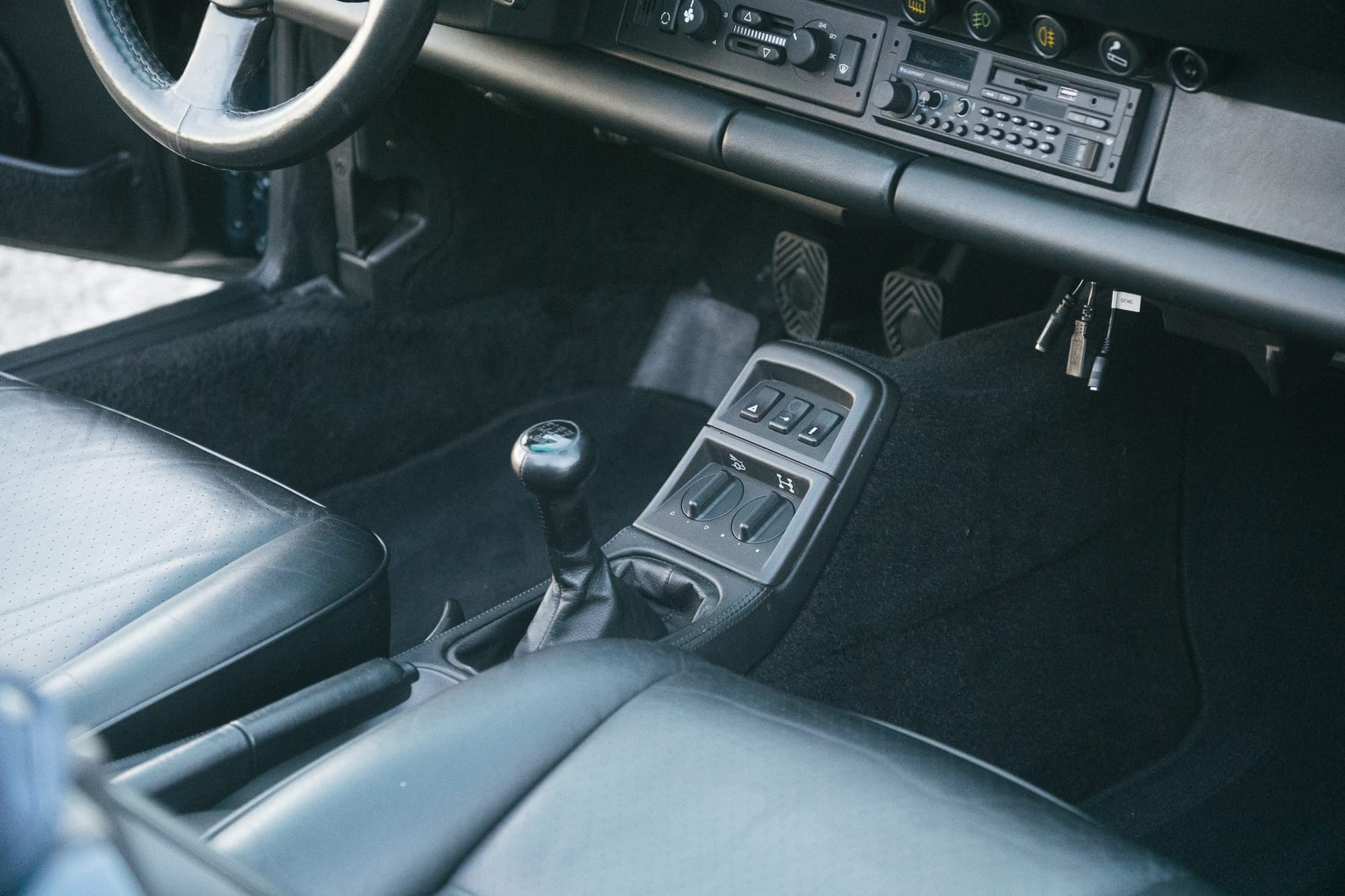 Der letzte Eigentümer hat dem klassischen 964-look lediglich ein Sport-Lederlenkrad, eine dunkelblaue Persenning und eine aufwändige Musikanlage mit Verstärker und modernem Radio in altem Design gegönnt.