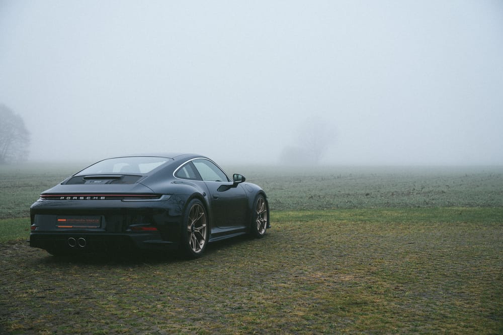 Der Porsche 981 Cayman GT4 stammt noch aus der pre-OPF-Ära und zieht jeden Petrolhead mit seinem unverkennbaren Sound in seinen Bann. Gänge werden selbstverständlich von Hand sortiert und mag der Schalensitz auch radikaler Aussehen und auf der letzten Rille zwischen Flugplatz und Schwedenkreuz mehr Halt bieten, der hier verbaute „P07 Adaptiver Sportsitz Plus“ sitzt sich auf Dauer besser und lässt sich feiner anpassen.